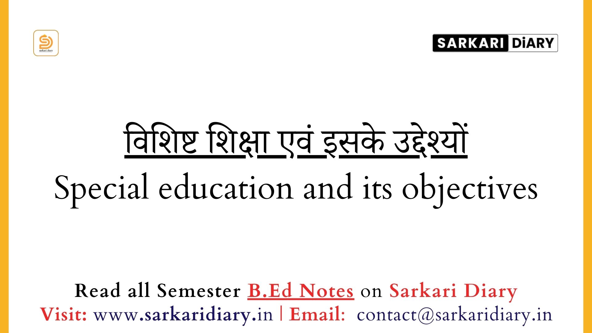 विशिष्ट शिक्षा के मुख्य उद्देश्य निम्नलिखित हैं।