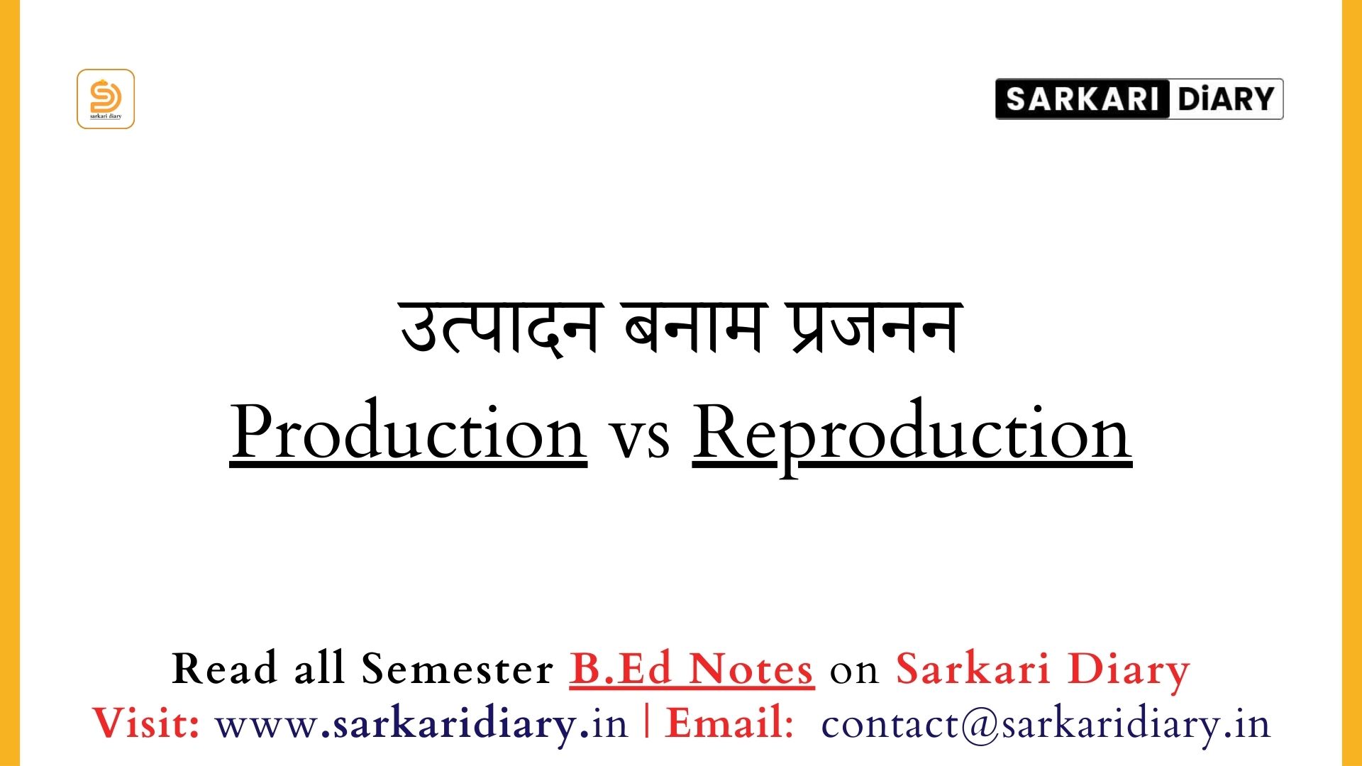 उत्पादन बनाम प्रजनन Production vs Reproduction (B.Ed Notes) - Sarkari DiARY