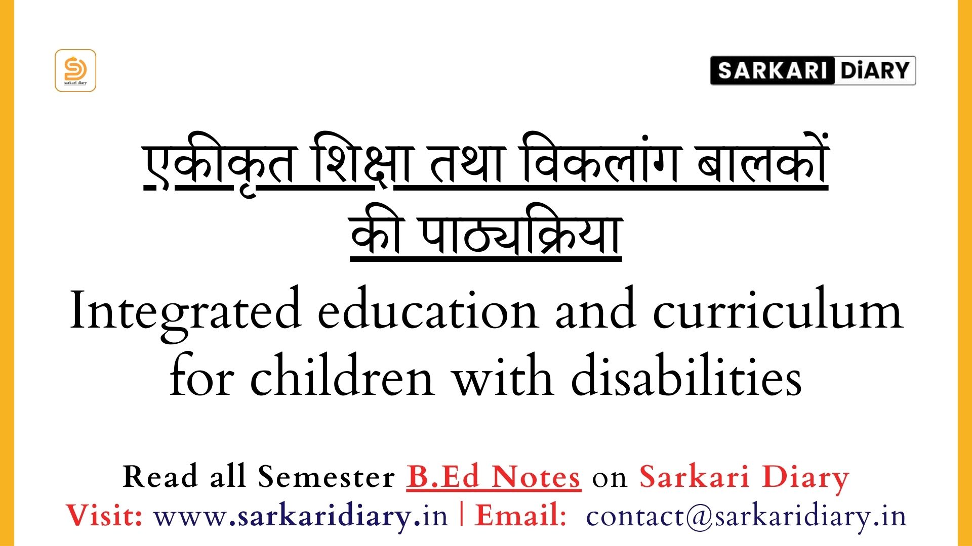 एकीकृत शिक्षा व विकलांग बालकों की पाठ्य क्रियाएँ (Inclusive Education and Curricular Activities of Handicapped Children) –