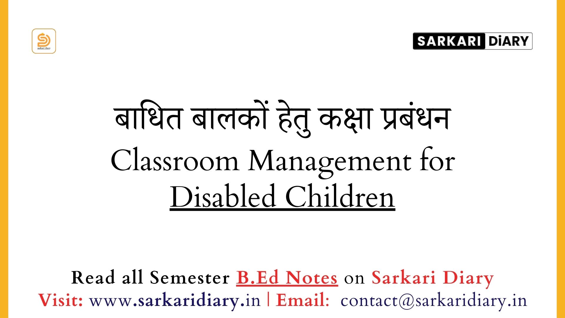 विशिष्ट विद्यार्थियों की व्यवहार सम्बन्धी समस्याएँ उनकी शैक्षिक उपलब्धियों का मार्ग अवरुद्ध कर देती हैं तथा कक्षा के सामान्य बालक उन्हें स्वीकार नहीं कर पाते। इसलिए बाधित विद्यार्थियों की व्यवहार सम्बन्धी समस्याओं का सही ढंग से प्रबन्धन करना बहुत महत्त्वपूर्ण है।