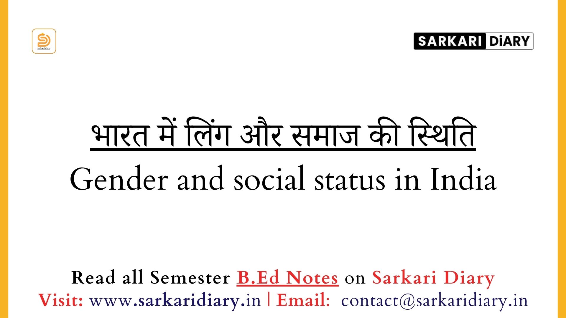 धीरे-धीरे भारतीय समाज में महिलाओं का स्थान बद से बदतर होता गया; किन्तु स्वतन्त्रता प्राप्ति के साथ ही भारत सरकार का ध्यान महिलाओं की स्थिति सुधारने की ओर गया और इसके लिए उसने अपनी सभी पंचवर्षीय योजनाओं में महिलाओं के लिए विशेष प्रावधान रखे। यही नहीं अनेक योजनाएँ एवं कानून भी महिलओं की स्थिति में सुधार लाने के लिए भारतीय सरकार द्वारा समय-समय पर बनाए जाते रहे। भारत में लिंग समाज की दशा का वर्णन इस प्रकार किया जा सकता है—