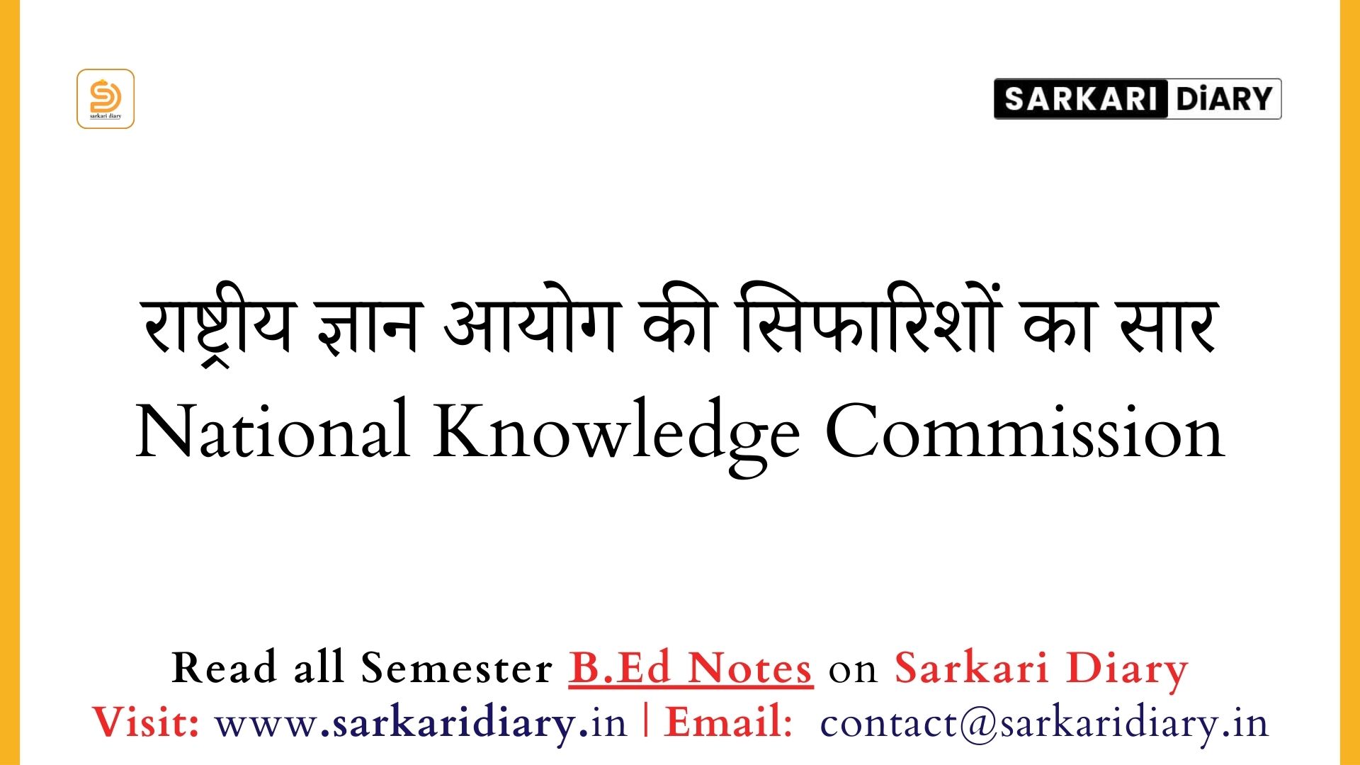 राष्ट्रीय ज्ञान आयोग की सिफारिशें भारत के शिक्षा और ज्ञान क्षेत्र में सुधार के लिए एक महत्वपूर्ण दस्तावेज हैं। रिपोर्ट में कई महत्वपूर्ण सिफारिशें शामिल हैं जो भारत को एक ज्ञान समाज में बदलने में मदद कर सकती हैं।