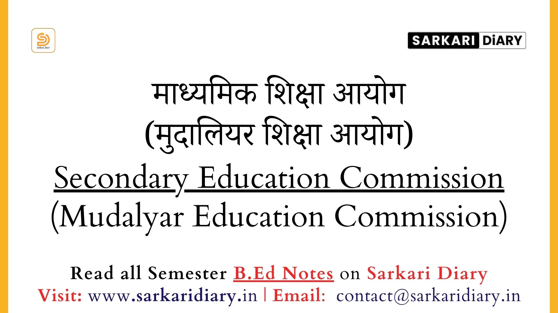 माध्यमिक शिक्षा आयोग (मुदालियर शिक्षा आयोग) B.Ed Notes