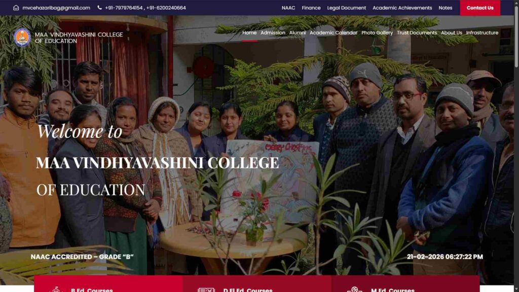 Maa Vindhyvashini B.Ed College, Padma (Hazaribag) is a recognised teacher training institution in Jharkhand committed to providing quality professional education in the field of teacher education. The college focuses on preparing competent, skilled, and value-oriented teachers through structured academic learning and practical training. It is known for its disciplined campus environment, experienced faculty members, and dedication to excellence in teacher preparation.
