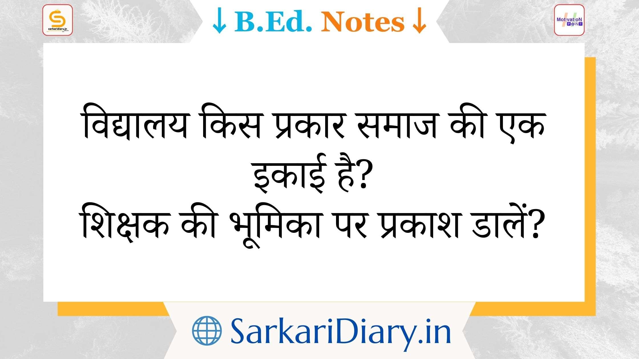 विद्यालय किस प्रकार समाज की एक इकाई है? शिक्षक की भूमिका पर प्रकाश डालें?