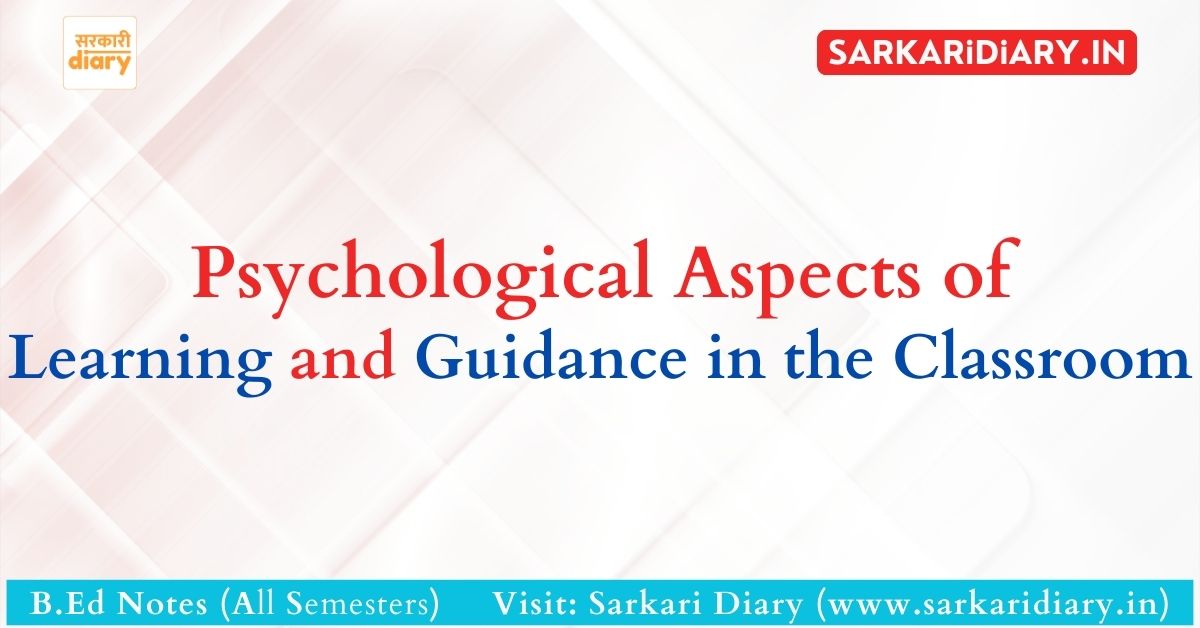 Psychological Aspects of Learning and Guidance in the Classroom: Understanding students and assisting them in understanding themselves is central to effective guidance. Certain principles help create an environment that promotes meaningful learning in the classroom.